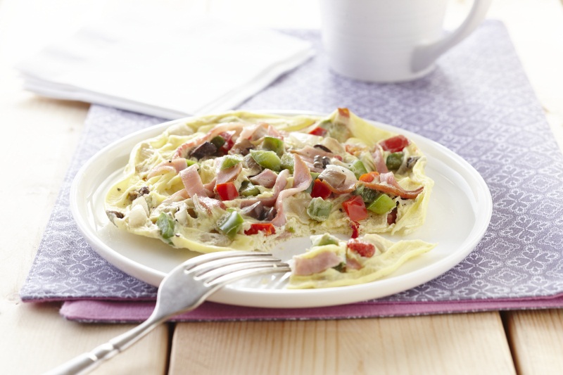 • Tortilla roulée avec jambon en conserve, légumes et relish